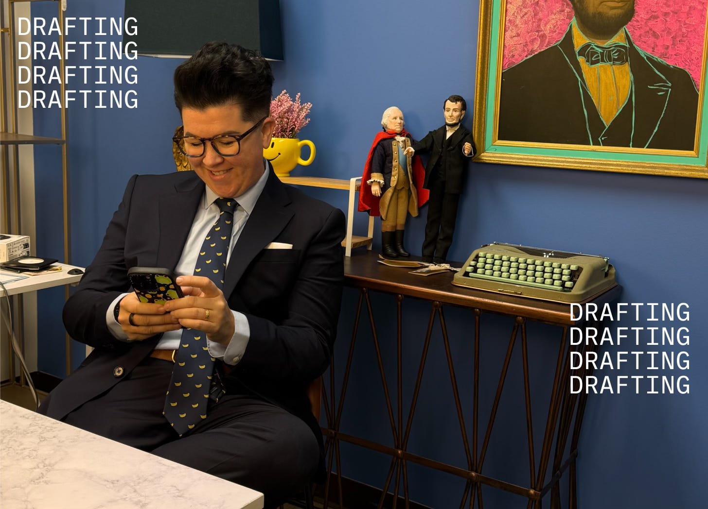 Sending my mom a picture of me in the suit she bought me to wear for my MSNBC hit — I just don’t feel fully confident till I get the, “Wowwww very nice,” seal of approval.